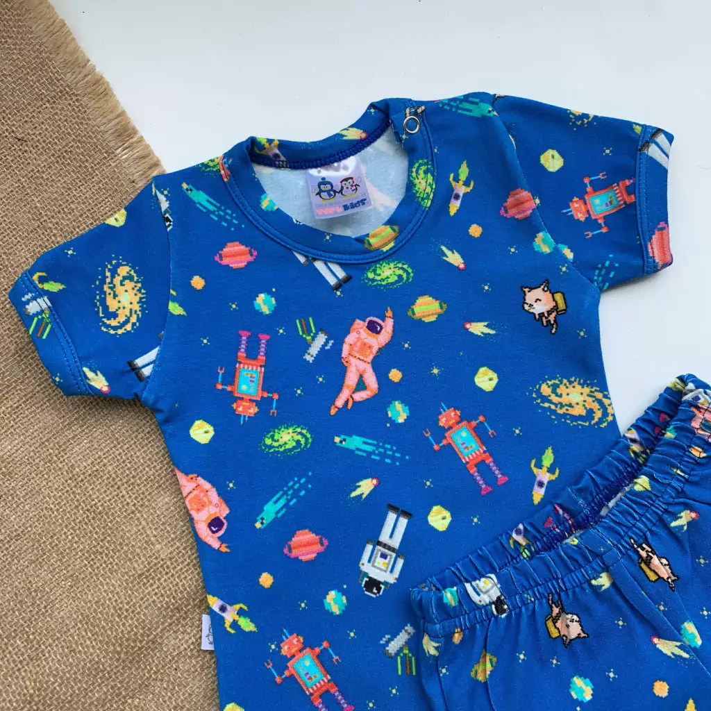 O conjunto perfeito para o dia quente, ele é fresquinho, confortável e muito versátil. Vai deixar o momento da brincadeira ainda mais especial e divertida. Seus detalhes são de encantar!
