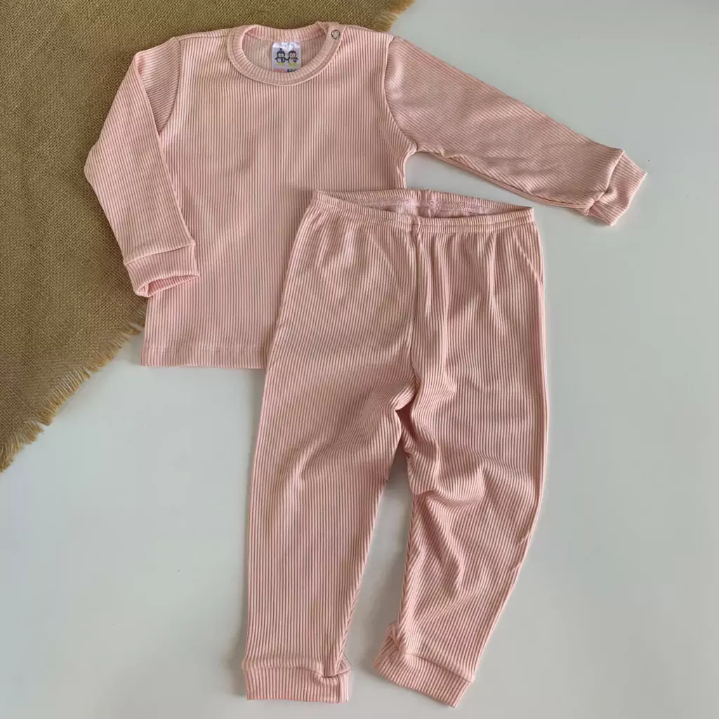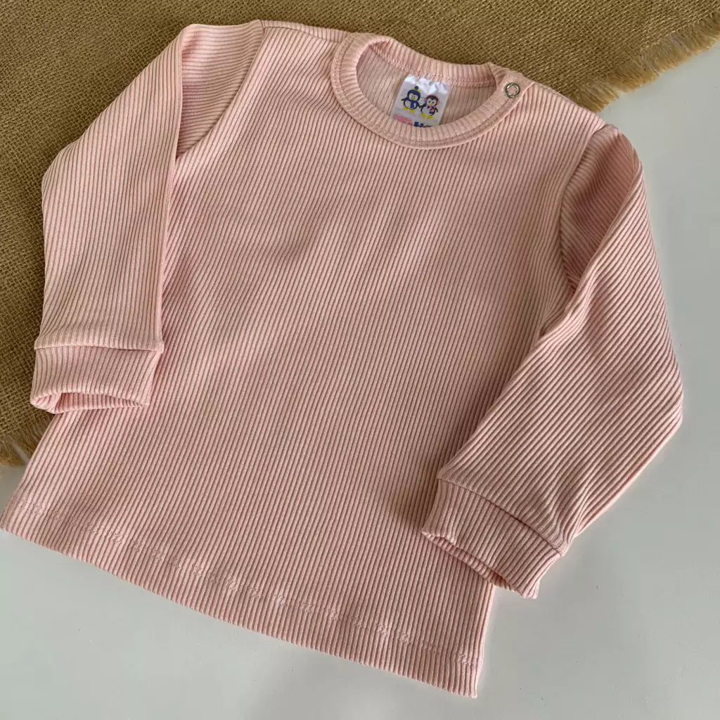 O conjunto de blusa canelado é uma ótima opção para os dias frios. Seu interior é peluciado semelhante ao térmico, porém o seu exterior é um tecido canelado super macio e maleável para vestir. Uma peça prática e linda que mantém o seu bebê quentinho sem precisar usar muitas camadas de roupas. Permite que o corpo transpire normalmente e não superaquece.